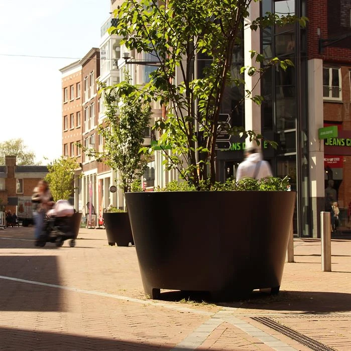 The CONIC aluminium planter gives parks and gardens a graceful and timeless look. The planter is corrosion resistant. By default, it is not waterproof. Aluminium is very lightweight. The aluminium planter can be left outside all year round without damage, even in freezing temperatures. That means that this you will enjoy this planter for many years.