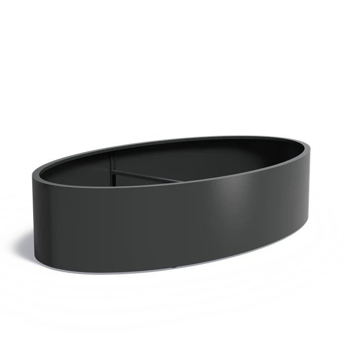 The ELLIPSE aluminium planter gives gardens an elegant look. The planter is corrosion resistant. By default, it is not waterproof. Aluminium is very lightweight. The aluminium planter can be left outside all year round without damage, even in freezing temperatures. That means that you can enjoy this planter for many years.