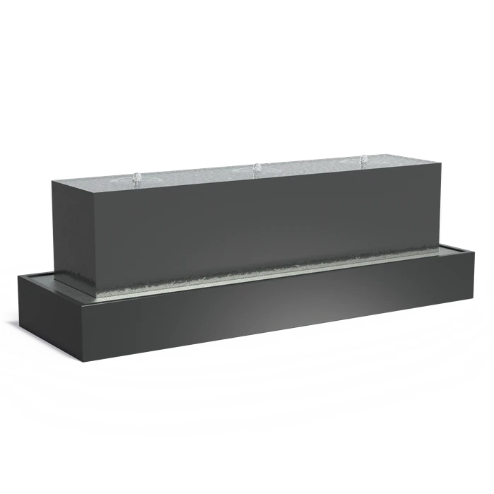 Our aluminium water block is a distinctive and stylish garden ornament. Water bubbles up through the stainless steel nozzle, which is enhanced with LED lights. The water then flows smoothly down the sides of the block into the underground collection tank before being pumped back to the top. The LED lighting provides extra ambience at night.