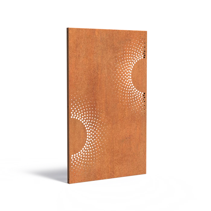 Our panels can be used as a windbreak or to create a private corner in a garden. These panels are also striking works of art. We have a variety of beautiful designs, such as panels with motifs inspired by abstract shapes. They add an interesting extra dimension to a garden when set in lush greenery.