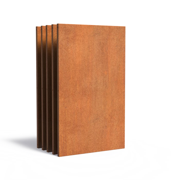 Corten steel is a metal alloy made by adding copper, phosphorus, silicon, nickel and chromium to iron. When exposed to air, the material forms a protective layer of rust. This natural coating prevents further corrosion so the panels will last for many years.
