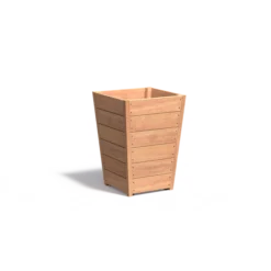 The square, tapered shape of the TAP gives it a chic look. This wooden planter will work well in projects with square planters.