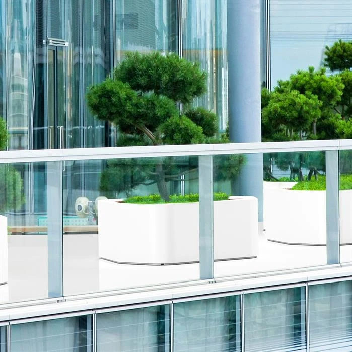 Our fibreglass planter is made of high-quality reinforced fibreglass. This makes the planter sturdy. The reinforcement has been extended into the corners, which prevents splitting. The fibreglass is dyed through, and the planter will retain its colour. The ‘glossy’ finish gives the planter a smooth and stylish appeal.