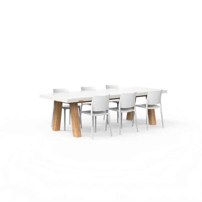 The stylish splayed legs of the COLLA table are made of wood for a natural look. This table has a slimmer tabletop when compared to the SOLID and the BORRA, giving it a chic appearance.
