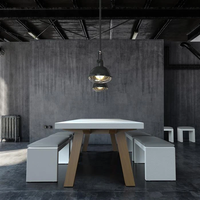When designing the COLLA table, we chose a sophisticated combination of a hardwood frame and a tabletop constructed from thick aluminium. The result is a unique and timeless table. The aluminium table is corrosion resistant.